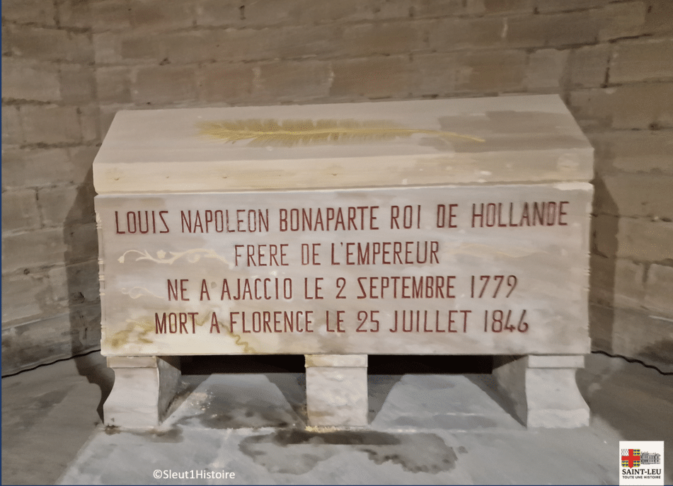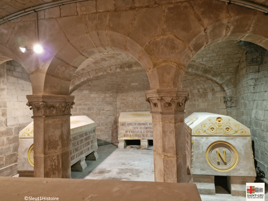 Dans la crypte, située sous le chœur de l’église, se trouvent quatre sarcophages. L'un, celui de Charles-Marie Bonaparte, est vide. Les trois autres abritent les corps de Louis Bonaparte et de ses fils Napoléon-Charles et Napoléon-Louis.© Sleut1Histoire