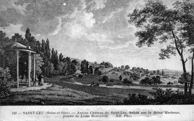 Désormais, la relation entre Saint Leu et les Bonaparte m’intrigue et, guidée par les publications de l’association Saint-Leu Terre d’Empire qui me fera visiter l’église et la crypte par la suite, je reconstitue son histoire. Tout commence par l’acquisition en 1804 du château de Saint-Leu par Louis Bonaparte et son épouse Hortense de Beauharnais, fille de la première femme de Napoléon Bonaparte, Joséphine. L’achat de ce château construit en 1693 et son domaine a pu se faire grâce à un cadeau de mariage un peu spécial. Napoléon Ier et Joséphine –qui ne réussissaient pas à avoir d’enfants ensemble– ont forcé Hortense et Louis –qui ne s’entendaient absolument pas– à se marier afin de procurer à l’Empire un héritier du même sang que celui du couple impérial. Pour se faire pardonner cette union arrangée uniquement dans son propre intérêt, l’Empereur offre au jeune couple une belle somme pour l’achat d’une propriété. Les époux optent pour le village de Saint-Leu et obtiennent le titre de comte et comtesse de Saint-Leu.