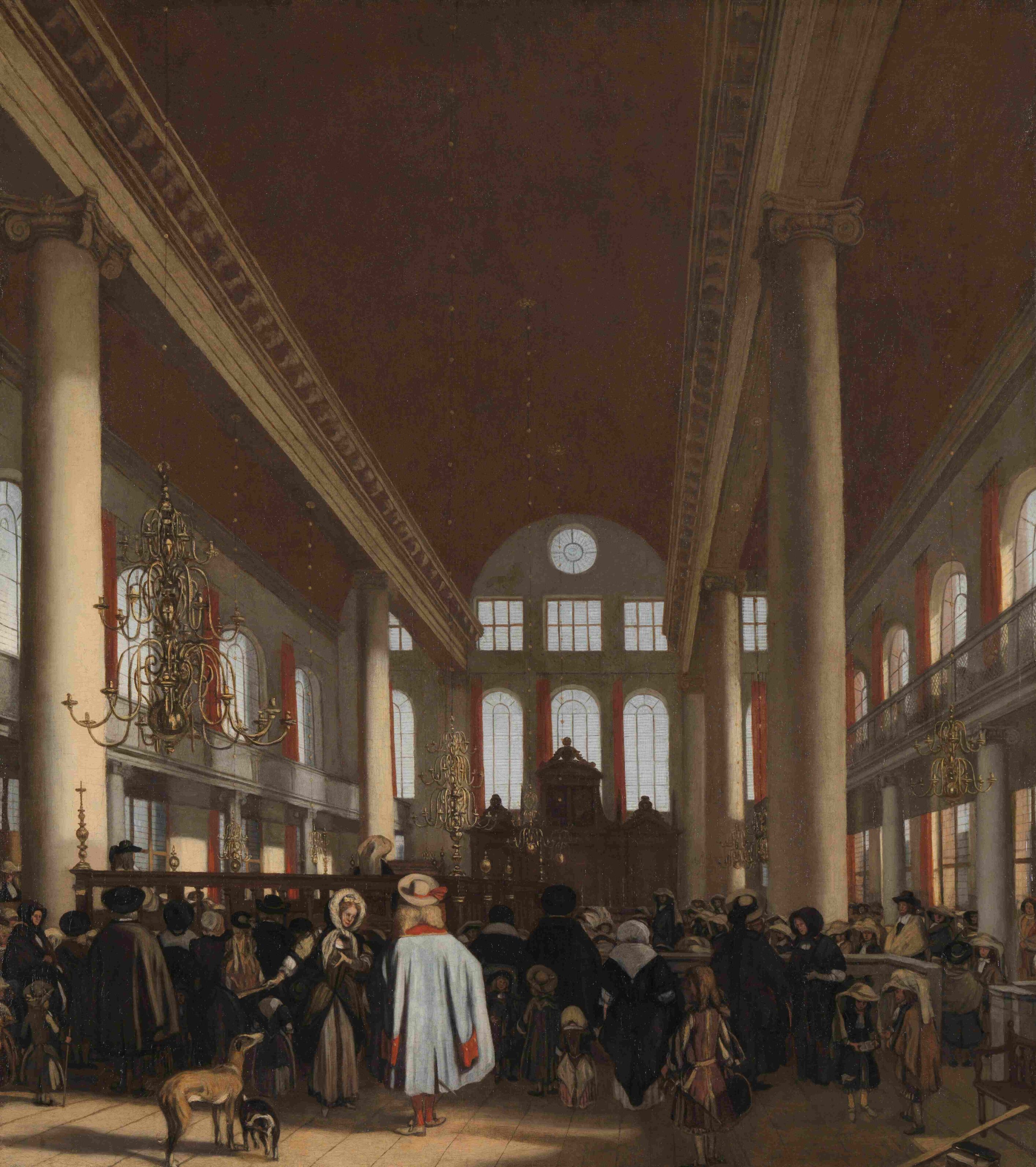 Intérieur de la Esnoga (ou Synagogue portugaise), tableau peint vers 1680 par Emmanuel de Witte, probablement sur commande d’un client juif.© Rijksmuseum, Amsterdam
