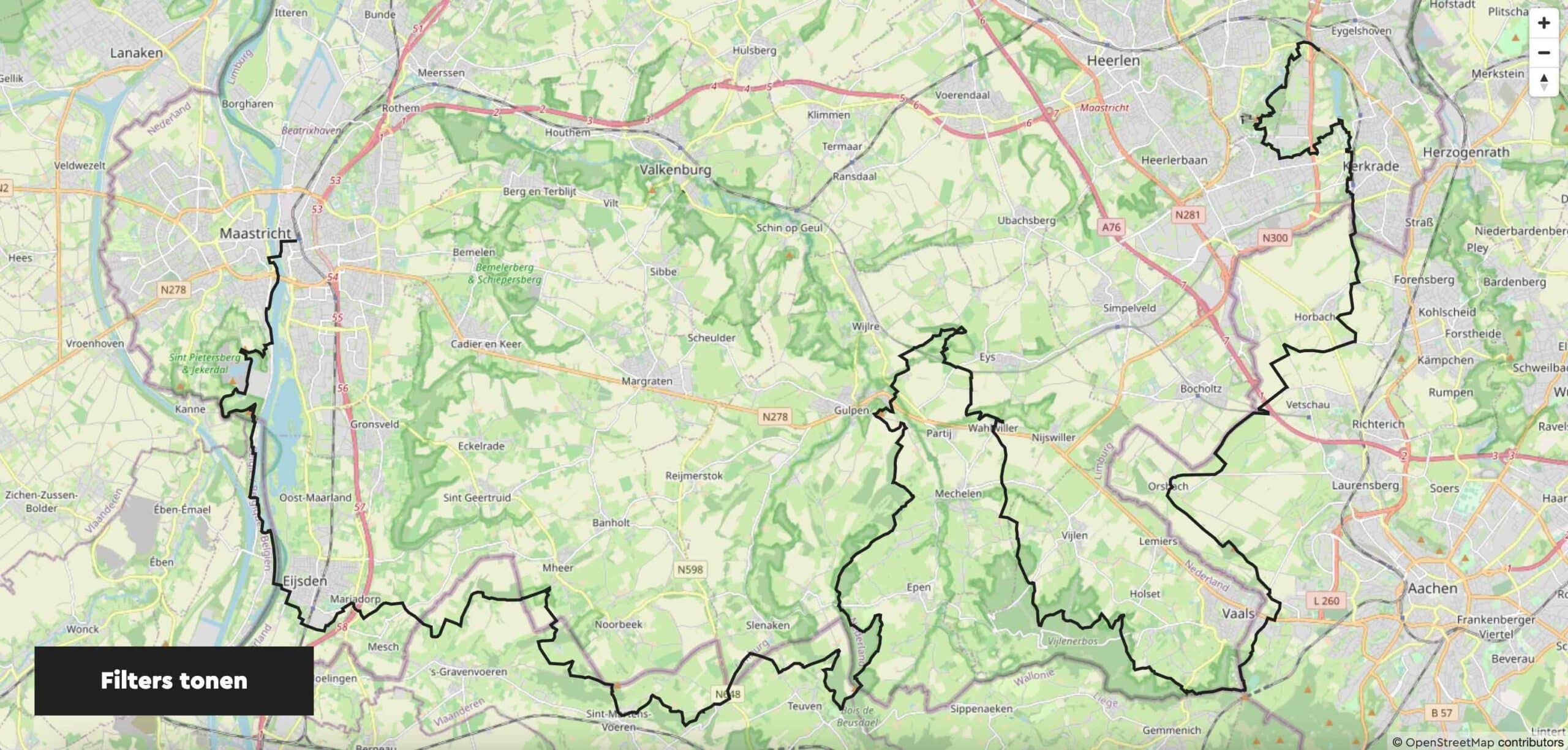 De Kerkrade à Maastricht, l’itinéraire traverse des vallées profondes, des rivières tumultueuses et de jolis bois: un paysage rural haut en couleur. À certains endroits, le sentier franchit la frontière pour passer en Allemagne et en Belgique où se trouvent deux des sommets de l’itinéraire. Curieusement, le circuit contourne le Vaalserberg, officiellement connu comme le point culminant des Pays-Bas, à 322 mètres au-dessus du niveau de la mer.