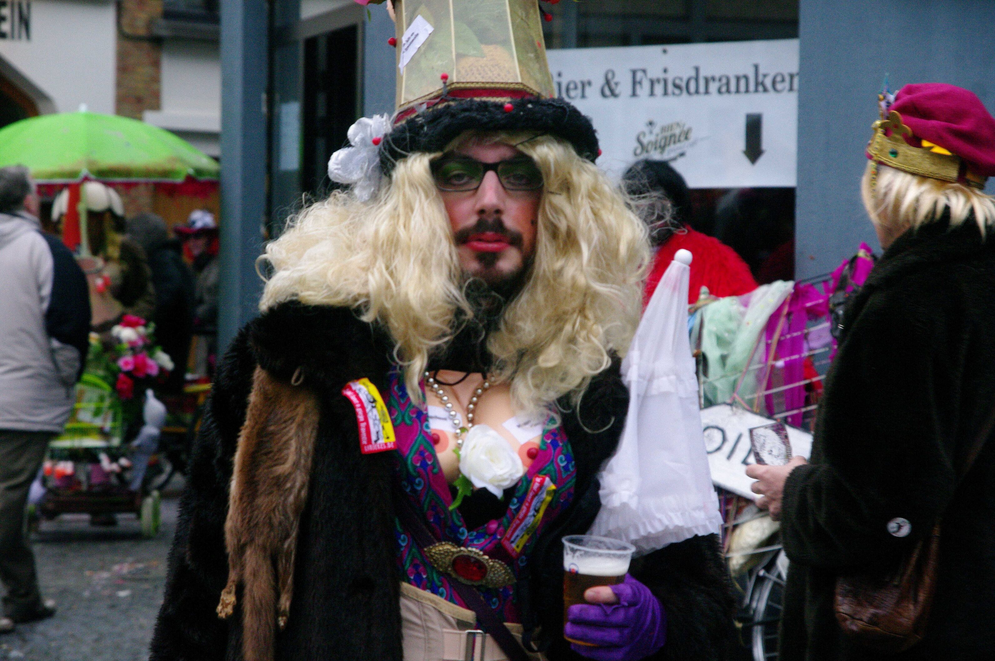 2) Figures du carnaval d’Alost, les Voil Jeanetten (Sales Jeanettes – Jeanettes étant un terme péjoratif pour désigner des hommes homosexuels) sont des hommes affublés de fausses poitrines et portant des vêtements féminins grotesques (manteaux de fourrure, accessoires loufoques, etc.).