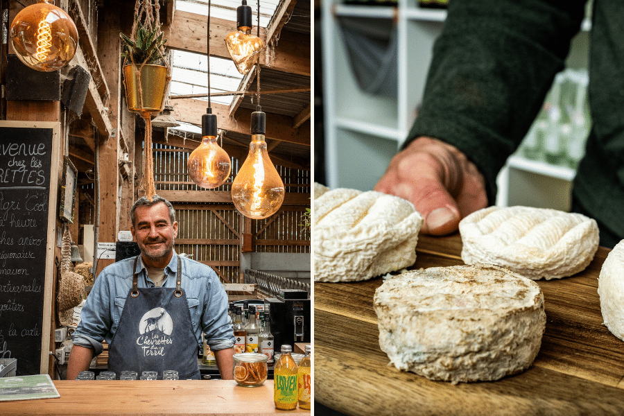 Et c’est un succès. Le mercredi matin de notre passage, les clients défilent dans la boutique pour acheter du fromage made in terril. Pendant que dans la bergerie, Olivier, le frère de Julien, se prépare au service! Car depuis 2018, on peut prendre un verre ou un repas confortablement installé au milieu des chèvres. À la carte? Des produits à base de chèvre, mais aussi du poulet au maroilles, de la carbonade flamande, etc. «À l’origine, ce bar-restaurant Agri’Cool était éphémère, mais ça a tout de suite pris. Nous sommes ouverts dix mois par an. Ça attire toujours du monde».
