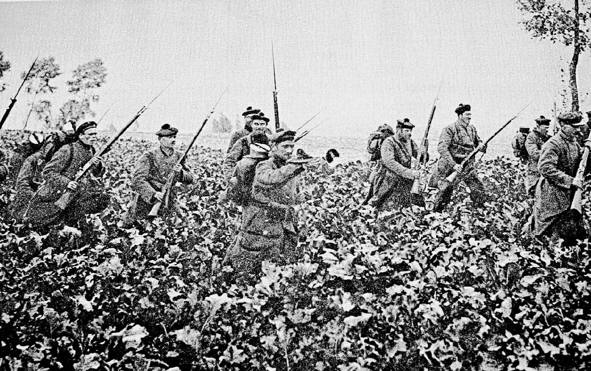 Des soldats de la demi-brigade de fusiliers marins commandée par l'amiral Ronarc'h, lors de la bataille de Dixmude en 1914.© Wikipedia Commons