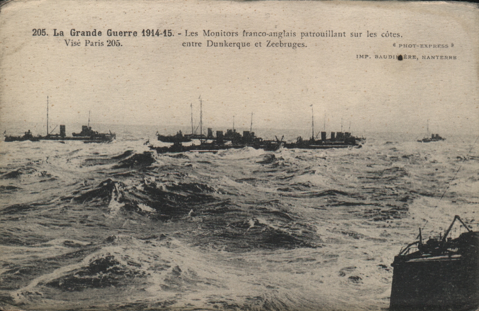 Les Monitors franco-anglais de la patrouille de Douvres patrouillant sur les côtes entre Dunkerque et Zeebruges.La guerre navale se modernise. Dès 1915, les Français créent le premier Centre d’aviation maritime aux Chantiers de France, alignant avions et hydravions. Ils seront imités par les Anglais et les Américains qui y créent à leur suite leur aéronautique navale, alors que les Allemands font de même à Ostende.