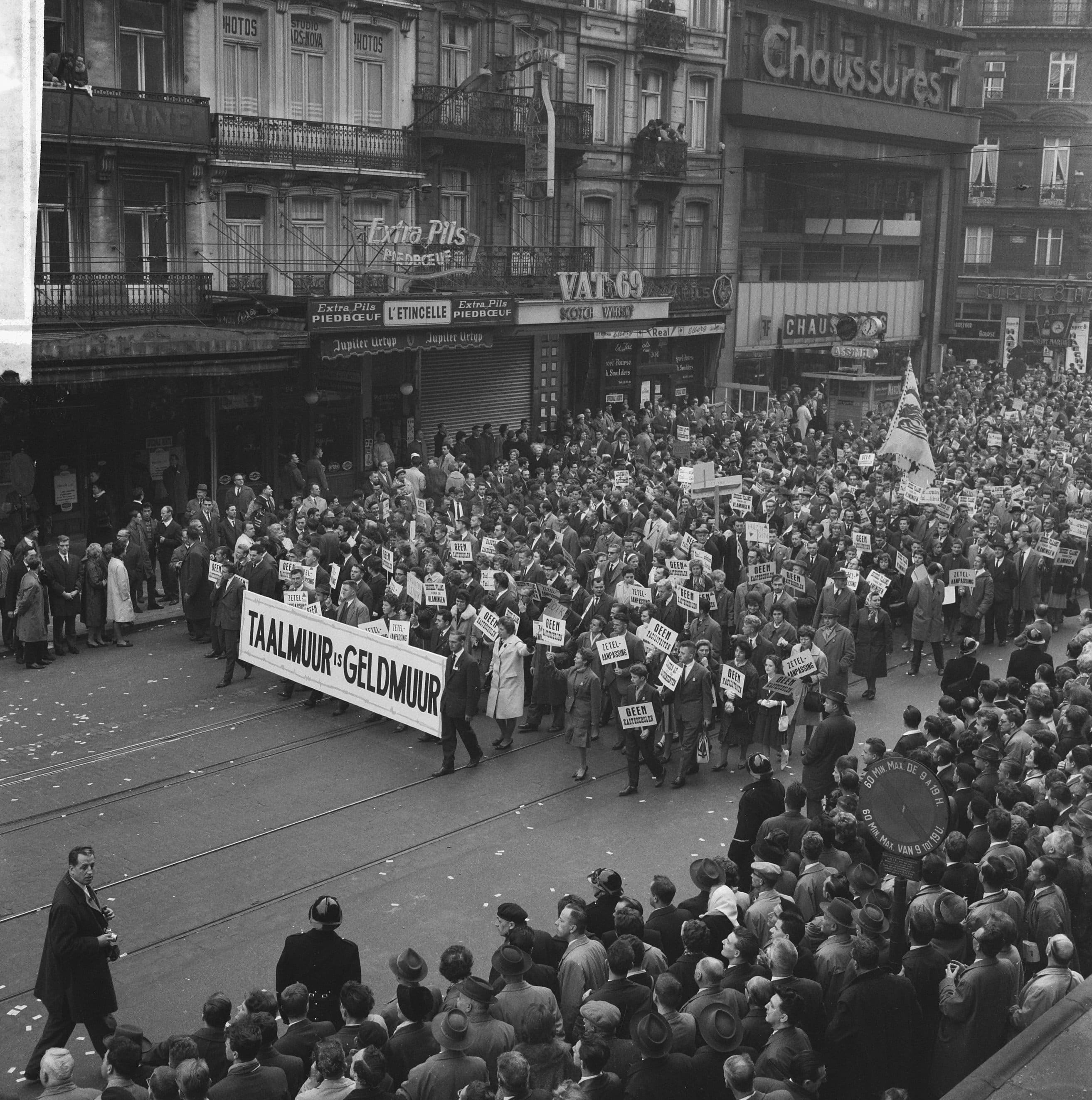 Toutes ces années de lobbying et ces investissements ont-ils porté leurs fruits? Assurément. D’abord avec la fixation de la frontière linguistique, qui ne s’est pas faite sans heurts. En 1961 et 1962, le Mouvement flamand, sous l’impulsion notamment du Vlaams Economisch Verbond (VEV), organise deux marches sur Bruxelles. L’objectif est de faire pression sur le gouvernement afin qu’il fixe définitivement la frontière linguistique, malgré l’opposition francophone, et qu’il adapte la législation linguistique dans l’enseignement et le monde de l’entreprise. Hein Beniest réalise des reportages sur ces deux marches.