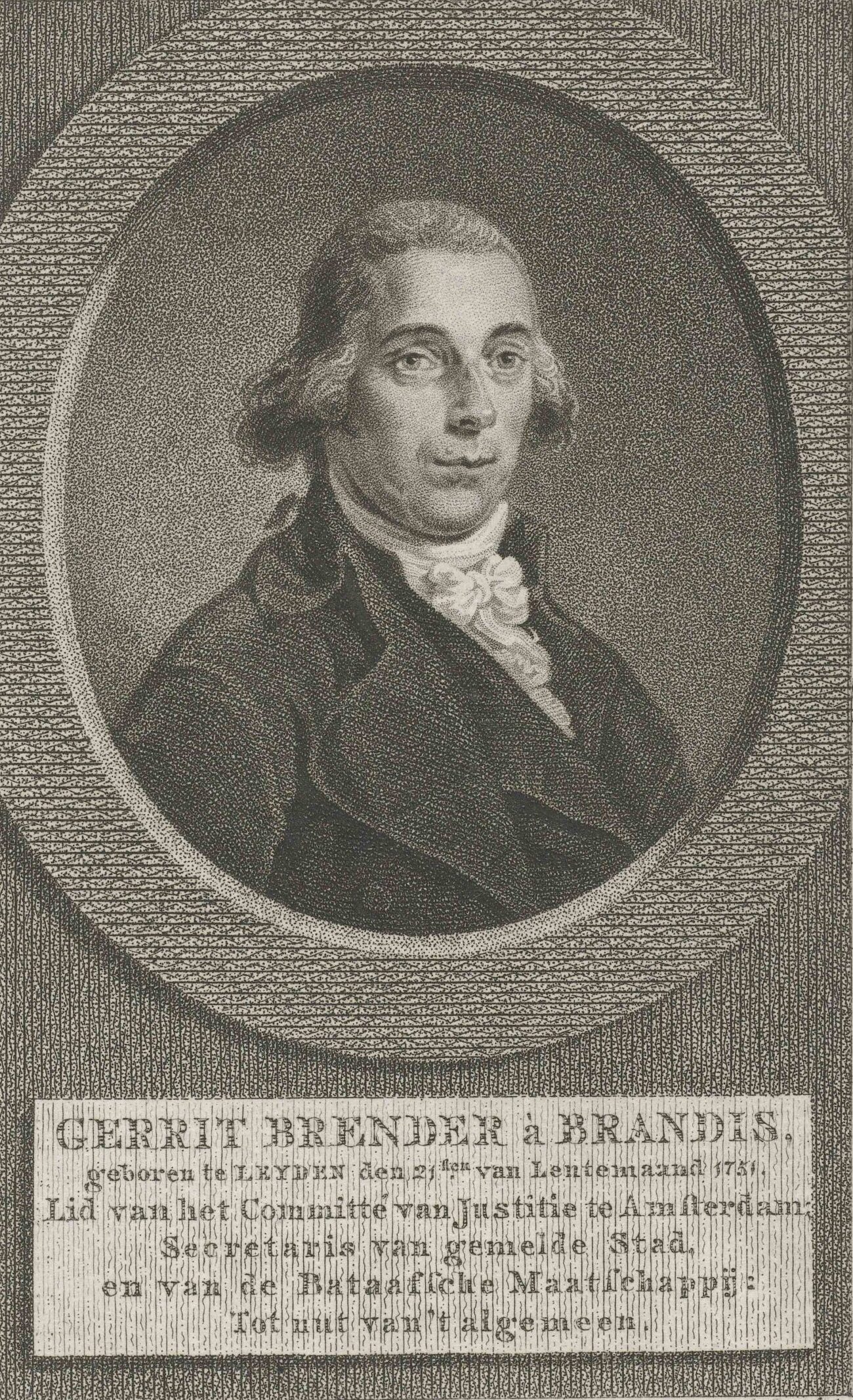 Portrait de Gerrit Brender à Brandis, professeur de mathématiques, écrivain et traducteur. Il fut un des membres les plus actifs à la direction de la Société. Gravure de Christiaan Josi, aux alentours de 1790 © Rijksmuseum, Amsterdam