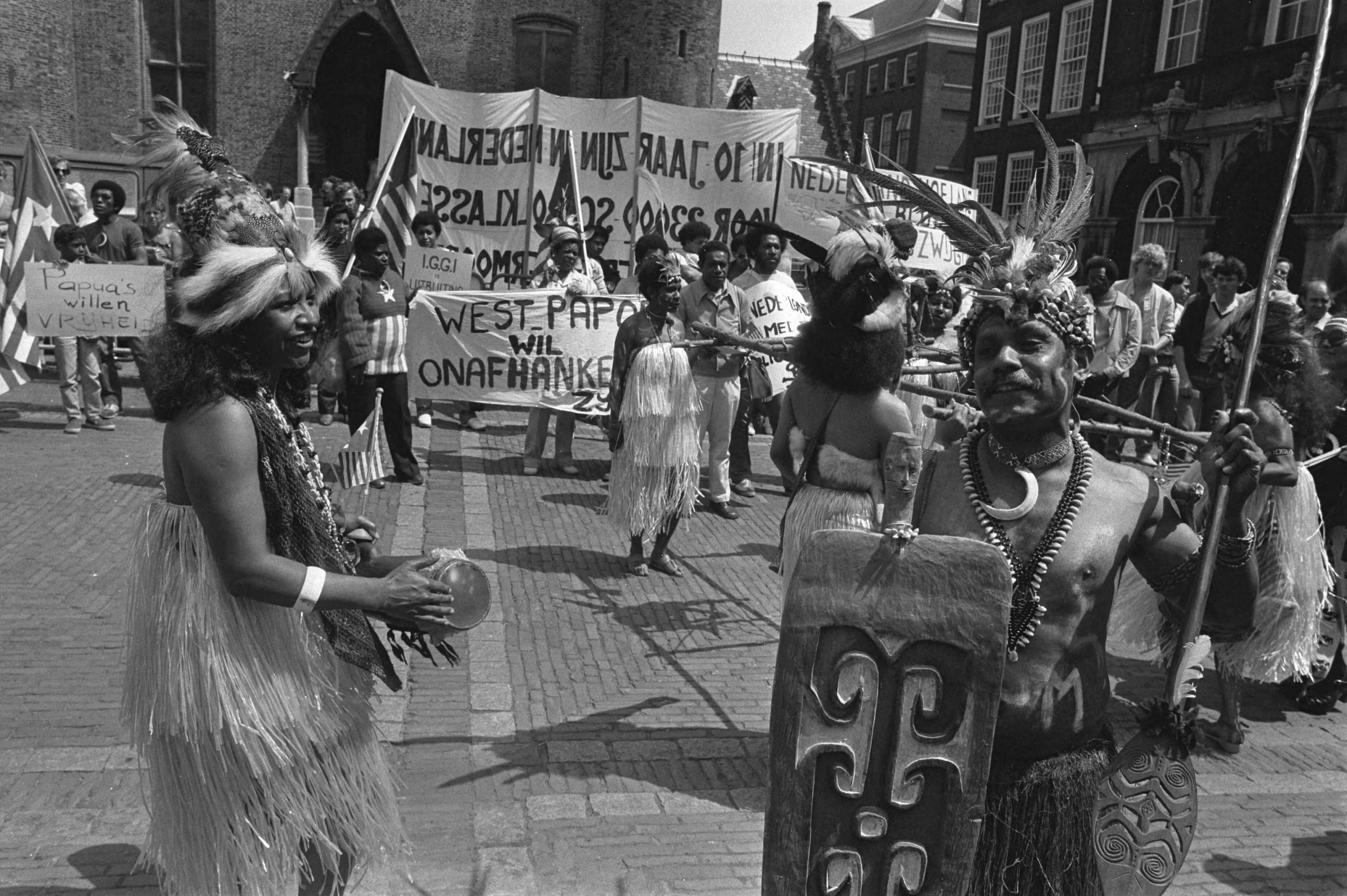 Manifestation au Binnenhof à La Haye pour l’indépendance de la Papouasie occidentale, le 8 juin 1982, vingt ans après le transfert à l’Indonésie. © Collection Anefo