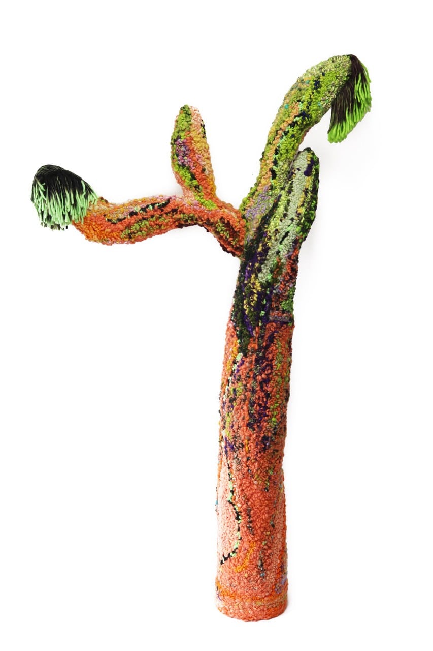 Vous regardez des arbres du désert, mais leur texture rappelle plutôt celle d’un tapis. Dans la série Joshua Tree de Sanne Bax (depuis 2023), les paysages sauvages et l’abri douillet de votre salon se côtoient. En même temps, les teintes atmosphériques rappellent la peinture abstraite. S’agit-il donc de sculpture, de peinture ou d’art textile? Car, de fait, ces statues sont tout cela à la fois.