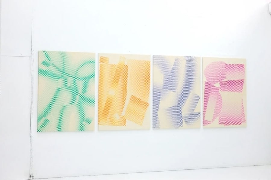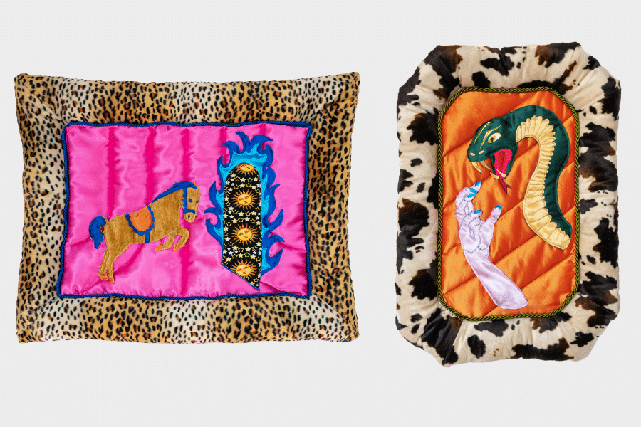 Pendant les confinements, le fils de Maria Kley, Rune, alors âgé de quatre ans, s’est révélé un dessinateur prolifique. Il prétendait avoir représenté des animaux; sa mère y voyait des espaces abstraits. Elle décide alors de donner vie à ces dessins, très domestiques, en colorant manuellement la gaze et en la modelant sur une corde à linge. Le résultat final, The Animals (2023), est aussi délicieusement difficile à cataloguer que les œuvres de Iulia Paraipan et de Sanne Bax, mais d’une manière très différente. Ainsi, ces animaux n’ont pas la massivité souvent associée à la sculpture. Kley a en outre tenu compte des combinaisons de couleurs, de la composition et de la luminosité, avec un résultat pictural. Par ailleurs, sa formation dans le domaine de la mode a influencé le processus de création: elle a cousu des matériaux ensemble. Elle réalise chaque nouveau projet sur mesure, avec l’approche d’un tailleur.