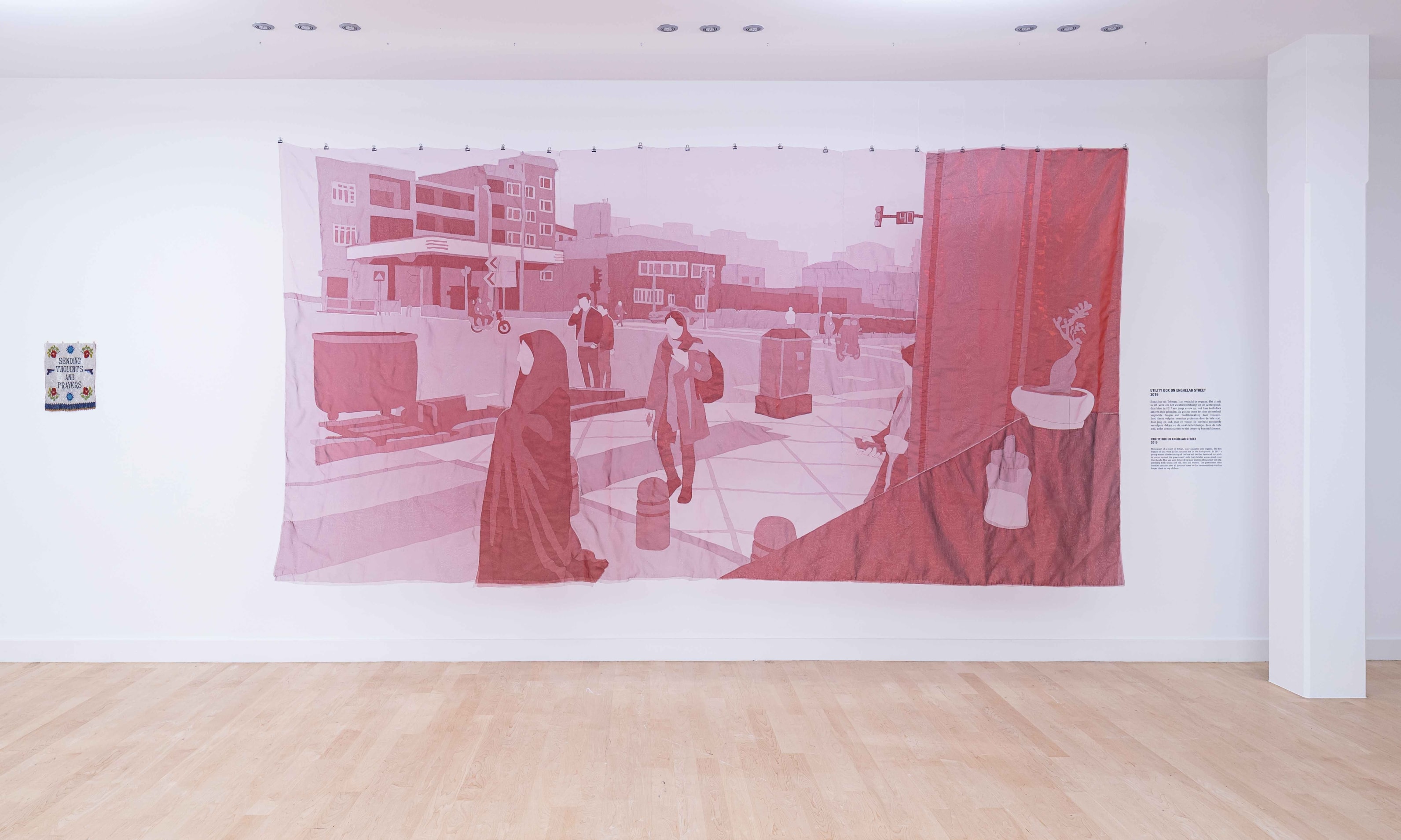 Joyce Overheul, Utility Box on Enghelab Street, 2019 Il est remarquable que toutes ces expositions associent les textiles à des thèmes sociétaux tels que l’injustice, la migration et le féminisme, par exemple en dépeignant des injustices ou en faisant référence à des traditions. Les expos dans lesquelles les textiles jouent un rôle deviennent ainsi un ensemble hétéroclite de thèmes et d’approches: des tapis figuratifs qui abordent des thèmes sociocritiques aux sculptures nouées, à la limite de l’art abstrait.