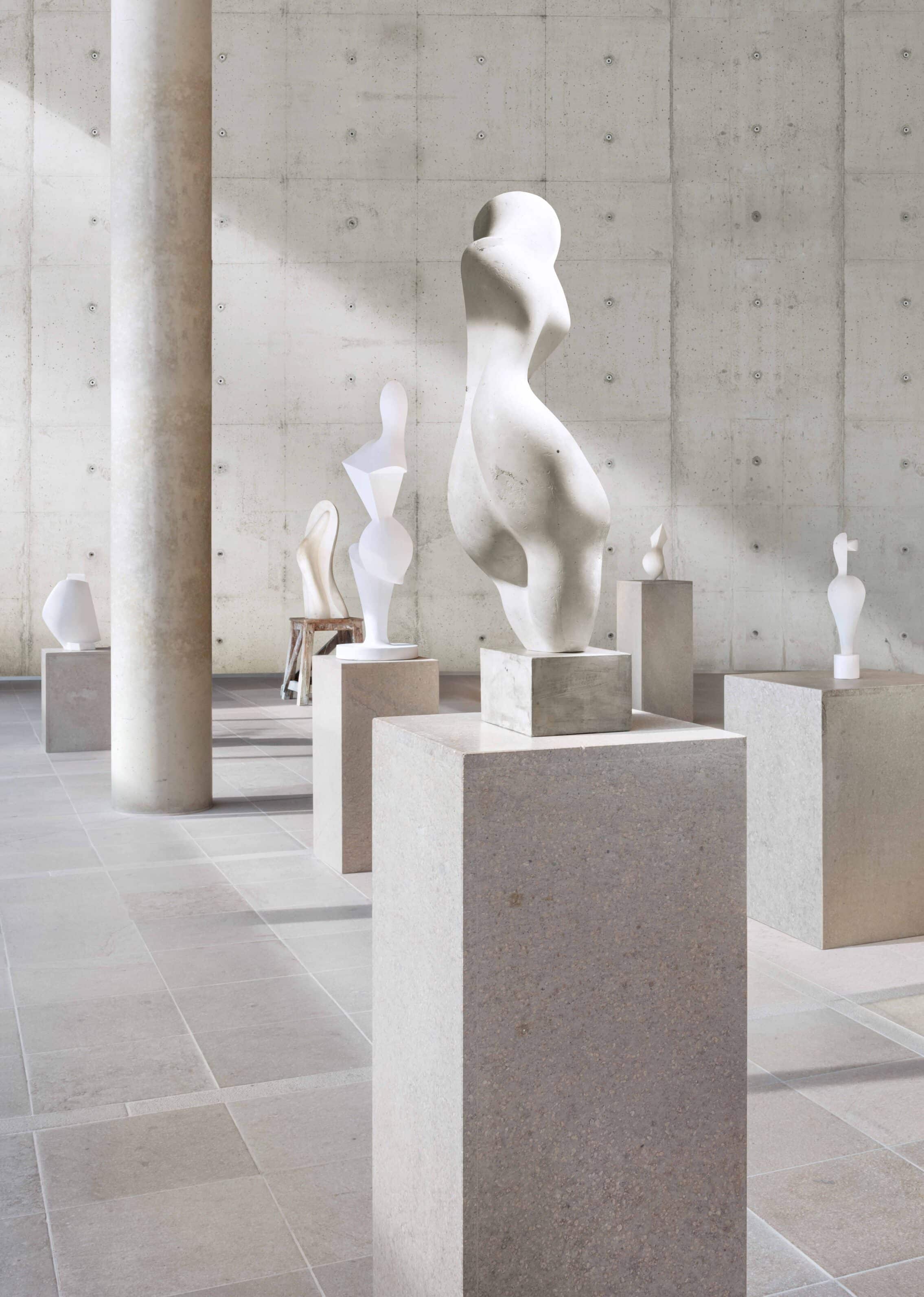 Durant l’exposition de Moore, quelques modèles en plâtre de Hans Arp (1886-1966) étaient exposés dans la salle de conservation des plâtres. Ils font partie de la donation que le musée Beelden aan Zee, comme quatre autres musées internationaux, a reçue de la fondation qui gère l’héritage du dadaïste franco-allemand. Il s’agit d’un bronze et de 21 plâtres exposés dans l’arrière salle sur des blocs de bois et, malgré la vulnérabilité du plâtre, sans cloches de verre, de manière à se croire presque dans l’atelier de Arp. Entretemps, une étude à grande échelle est lancée avec les autres musées sélectionnés, qui doit aboutir en 2027 à une vue d’ensemble sans précédent de l’œuvre de Arp.
