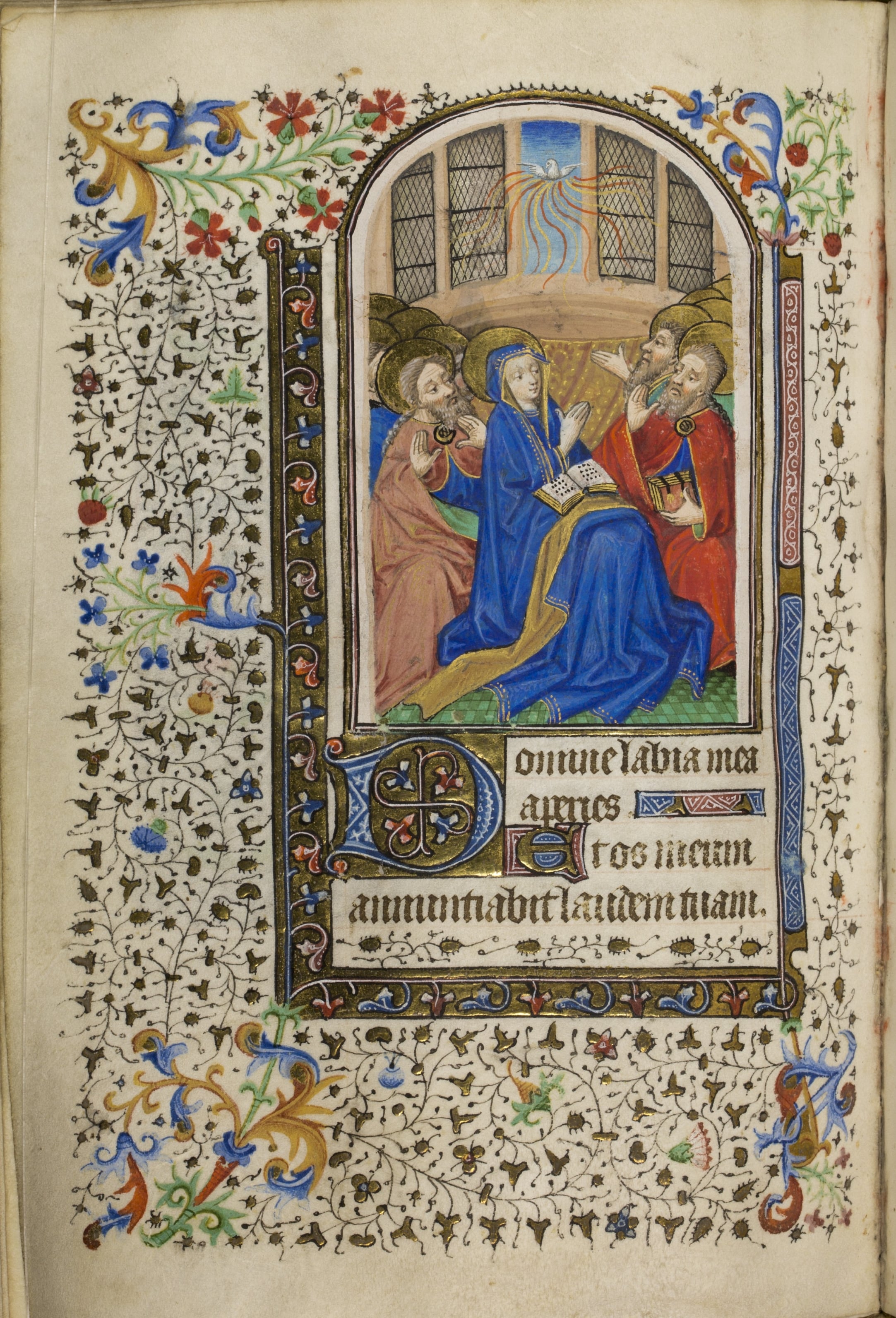 Plus tard, les livres de prières ont trouvé également leur place parmi les couches plus larges de la population. Au XIVe siècle, les bouleversements causés par la peste noire (1348-1349) donnent naissance à de nouveaux mouvements religieux et renforcent la vie associative religieuse au sein des confréries et des sororités laïques. Au cœur de ces mouvements se trouvait un rapprochement des fidèles à Dieu, ce que permettaient les livres d’heures en offrant aux laïcs la possibilité de prier sans l’aide d’un prêtre. Nombre de leurs heures et prières étaient adressées à la Vierge Marie, principale intermédiaire entre Dieu et l’homme.