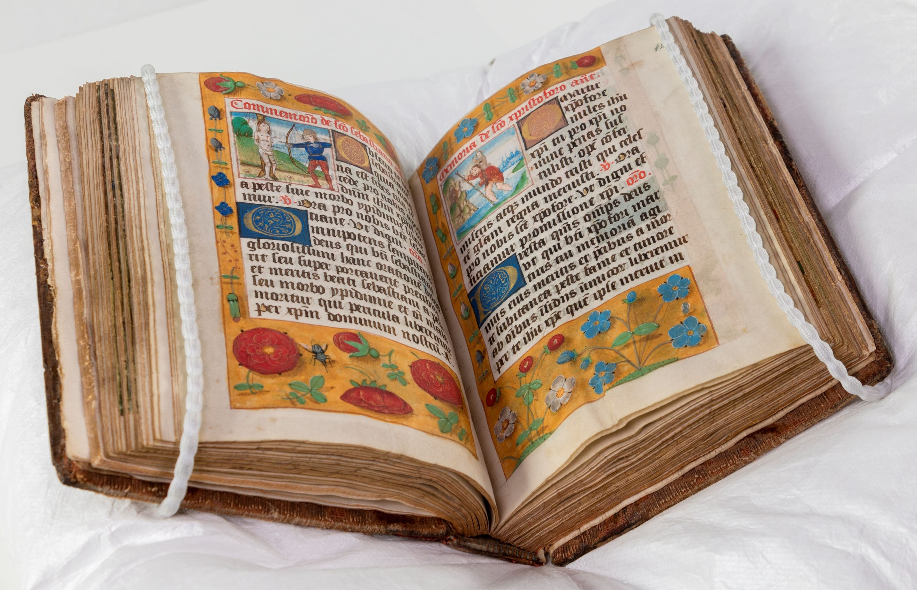 Les livres d’heures sont un phénomène propre au bas Moyen Âge. Ils ont été les ouvrages les plus produits en Europe pendant plus de trois cents ans. Du XIIIe siècle –moment où apparaissent les premiers exemplaires– jusqu’en 1571, date à laquelle le pape Pie V en interdit l’usage dans le cadre de la Contre-Réforme et introduit le catéchisme catholique, on les trouvait dans presque tous les foyers (aisés).