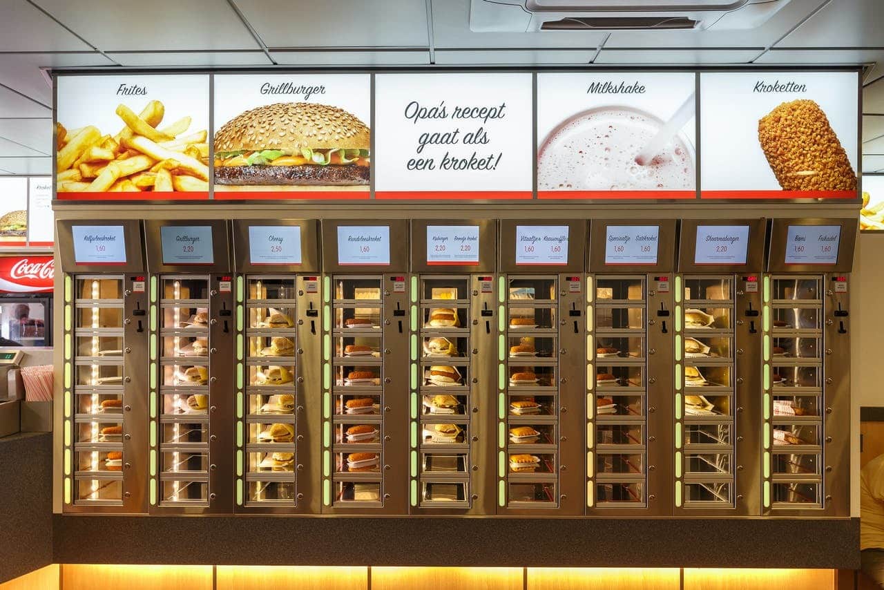 C’est en 1902, à Amsterdam, que le premier distributeur néerlandais est né. Le concept s’est ensuite propagé jusqu’aux gares et aux rues commerçantes dans les années 1930 pour réapparaître trente ans plus tard quand le boulanger Johan de Borst a décidé de vendre ses croquettes faites maison dans un automatiek situé le long de l’Amstelveenseweg, la route principale reliant Amsterdam et Amstelveen.