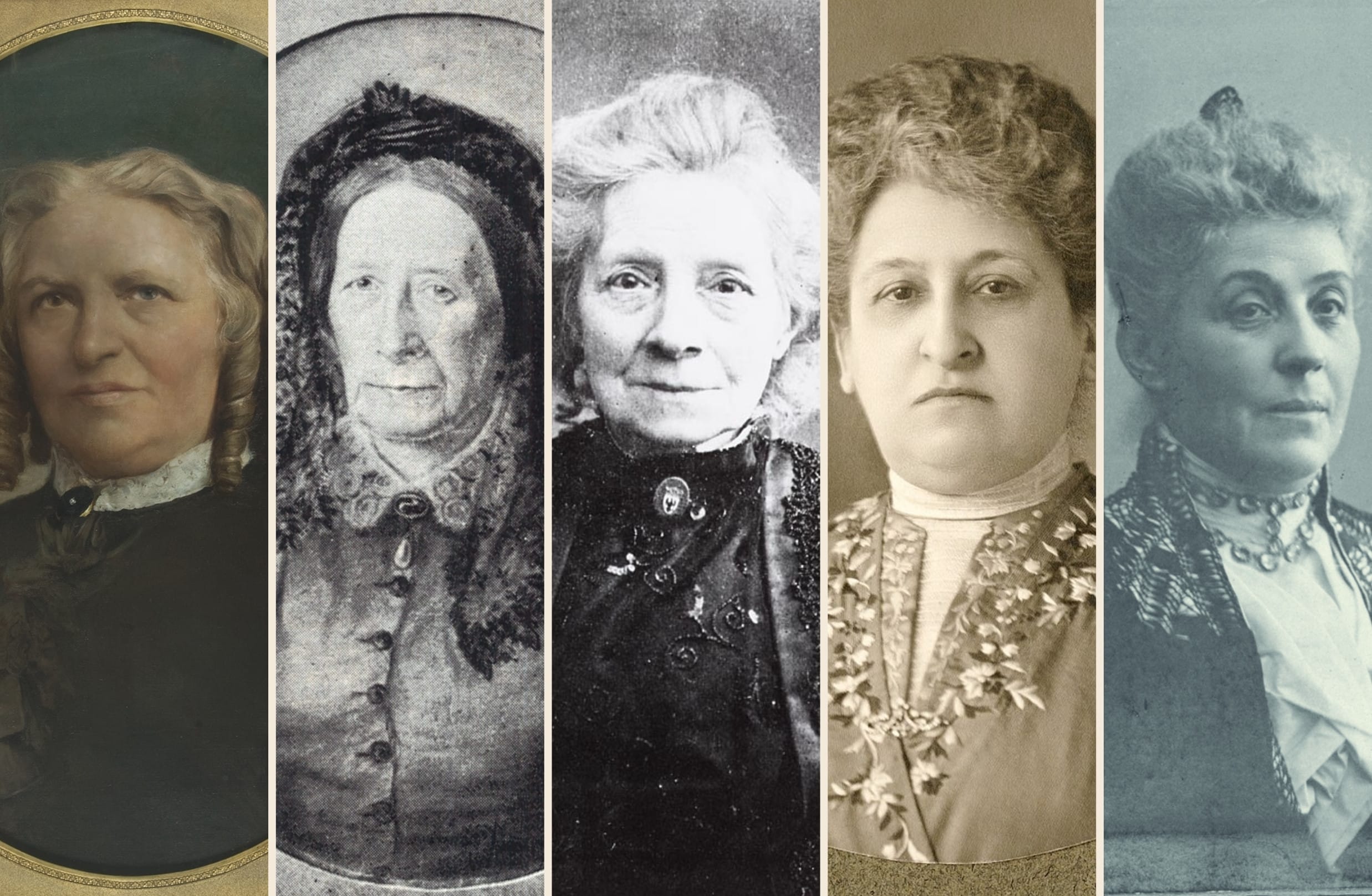 Cinq pionnières du féminisme aux Pays-Bas: Elise van Calcar fut la première Néerlandaise à prendre la parole en public; Mienette Storm-van der Chijs était une riche veuve et féministe; l’écrivaine Betsy Perk entreprit une tournée de conférences à travers les Pays-Bas avec Mina Kruseman; Aletta Jacobs fut la première femme médecin des Pays-Bas; Wilhelmina Drucker était une écrivaine et activiste engagée pour la paix © Wikimedia Commons