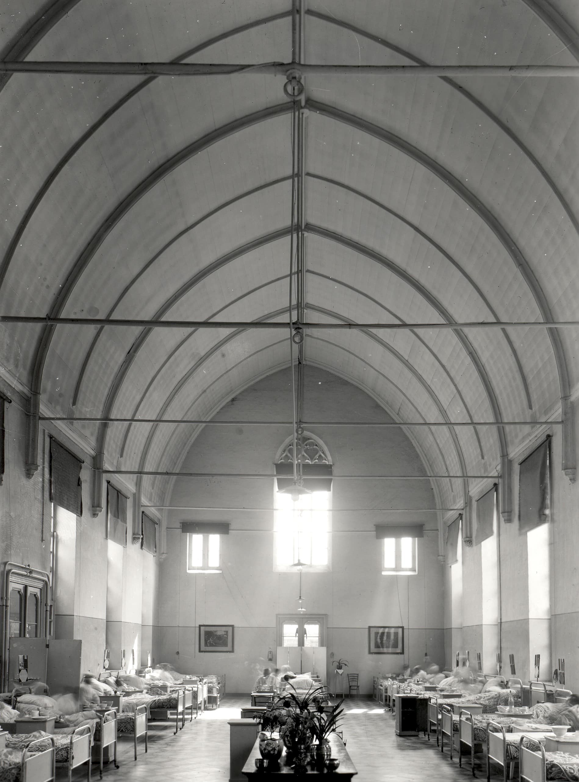Le Kraakhuis de la Bijloke lorsqu’il était encore en usage comme salle des malades. © KIK-IRPA, Bruxelles