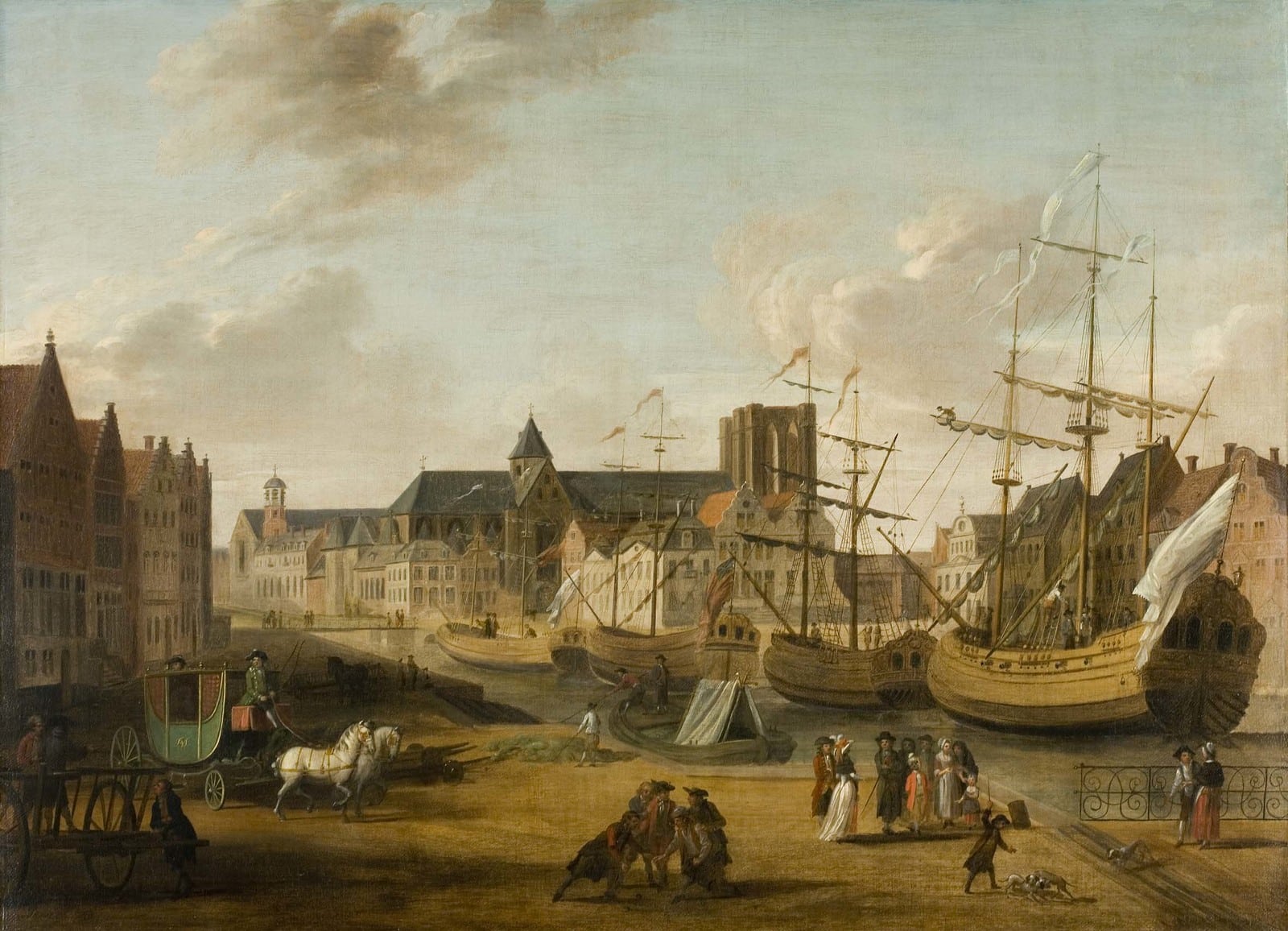 Dans leurs efforts visant à encourager le commerce, les autorités gantoises ont également construit le Pakhuis, un grand entrepôt installé sur le Korenmarkt où les commerçants pouvaient stocker leurs marchandises. Ce bâtiment situé au cœur de la ville accueillait également la Chambre de commerce qui a décidé, dans les années 1780, de faire décorer ses locaux et d’organiser pour ce faire un concours mettant les artistes de l’académie locale au défi de produire une œuvre sur le thème du «commerce florissant de Gand». Le jury a voté à l’unanimité pour le peintre gantois Pieter van Reysschoot et son Allegorie op de handel van Gent (Allégorie du commerce gantois). Au centre de la toile trône une Vierge symbolisant la ville de Gand. À côté d’elle se trouve Mercure, le dieu du commerce, tandis qu’une statue de Neptune, le dieu de la mer, domine la scène. La figure centrale est flanquée d’une femme asiatique et d’un homme africain, et au bas du tableau s’empilent des marchandises venues d’ailleurs –notamment des défenses en ivoire.