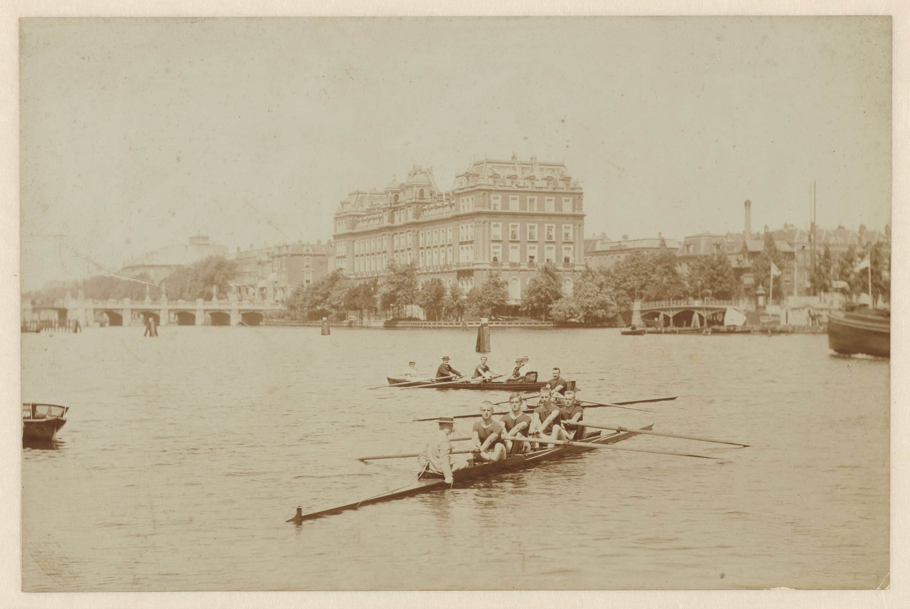 Barques sur l’Amstel devant le luxueux Amstel Hotel. Sarphati considérait qu’un hôtel haut de gamme était nécessaire afin d’attirer la haute société européenne à Amsterdam et cherchait des investisseurs pour son projet. © Rijksmuseum, Amsterdam